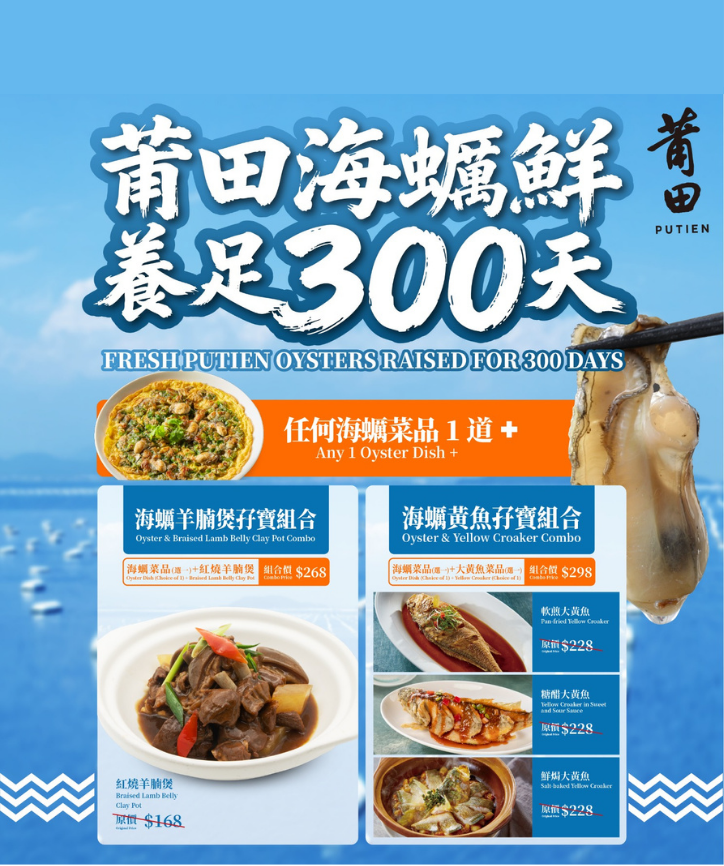 莆田,一家源自新加坡的福建菜餐廳,連續七年榮獲新加坡米芝蓮一星餐廳;現正推出多款特色海蠣菜式,讓你越吃越蠣害🦪