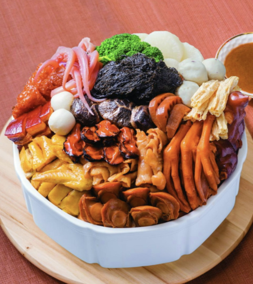 賀年必食花膠發財好市大盆菜! 滿載髮菜、蠔豉、鮑魚、花膠等鮮香食材,搭配雞、豬手、腩肉慢煨入味,冬菇、魷魚、枝竹吸盡濃醇精華,連蘿蔔、蓮藕都滲透南乳香氣!一鍋團圓豐盛,鮮香撲鼻,食過龍精虎猛,財源滾滾來!