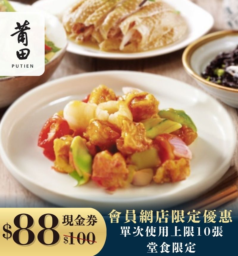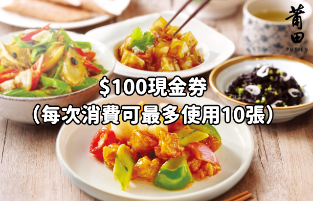 經「莆田」會員頁面網上商店購買可獲優惠價$88買$100 現金券;每次消費可最多使用10張「【2025網購優惠】$100現金券」。