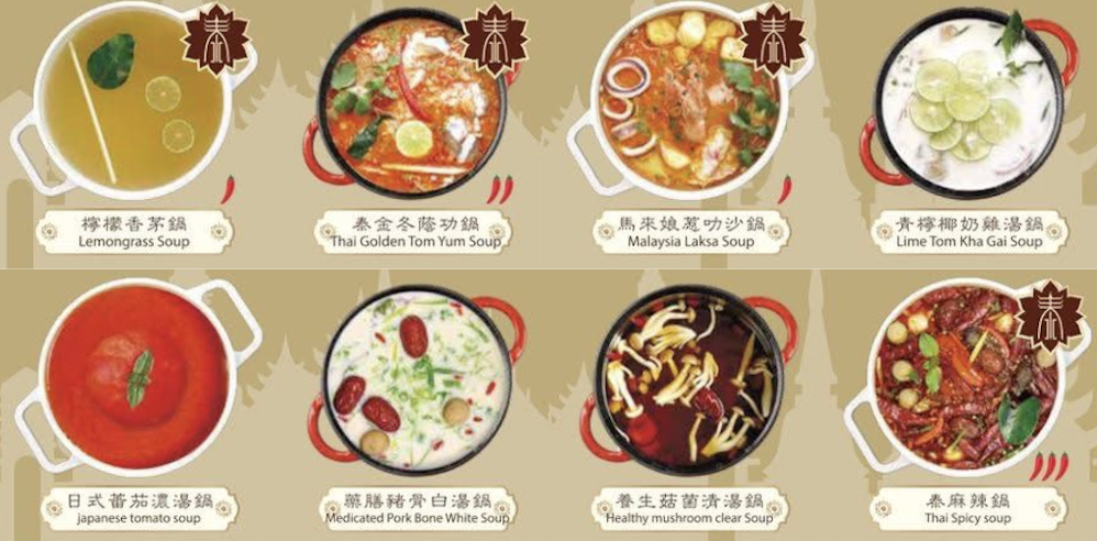 ▲套餐包括多款惹味泰式湯底供選擇,其中泰金冬蔭公鍋、馬來娘惹叻沙鍋及青檸椰奶雞湯鍋都是特色湯底,值得一試!