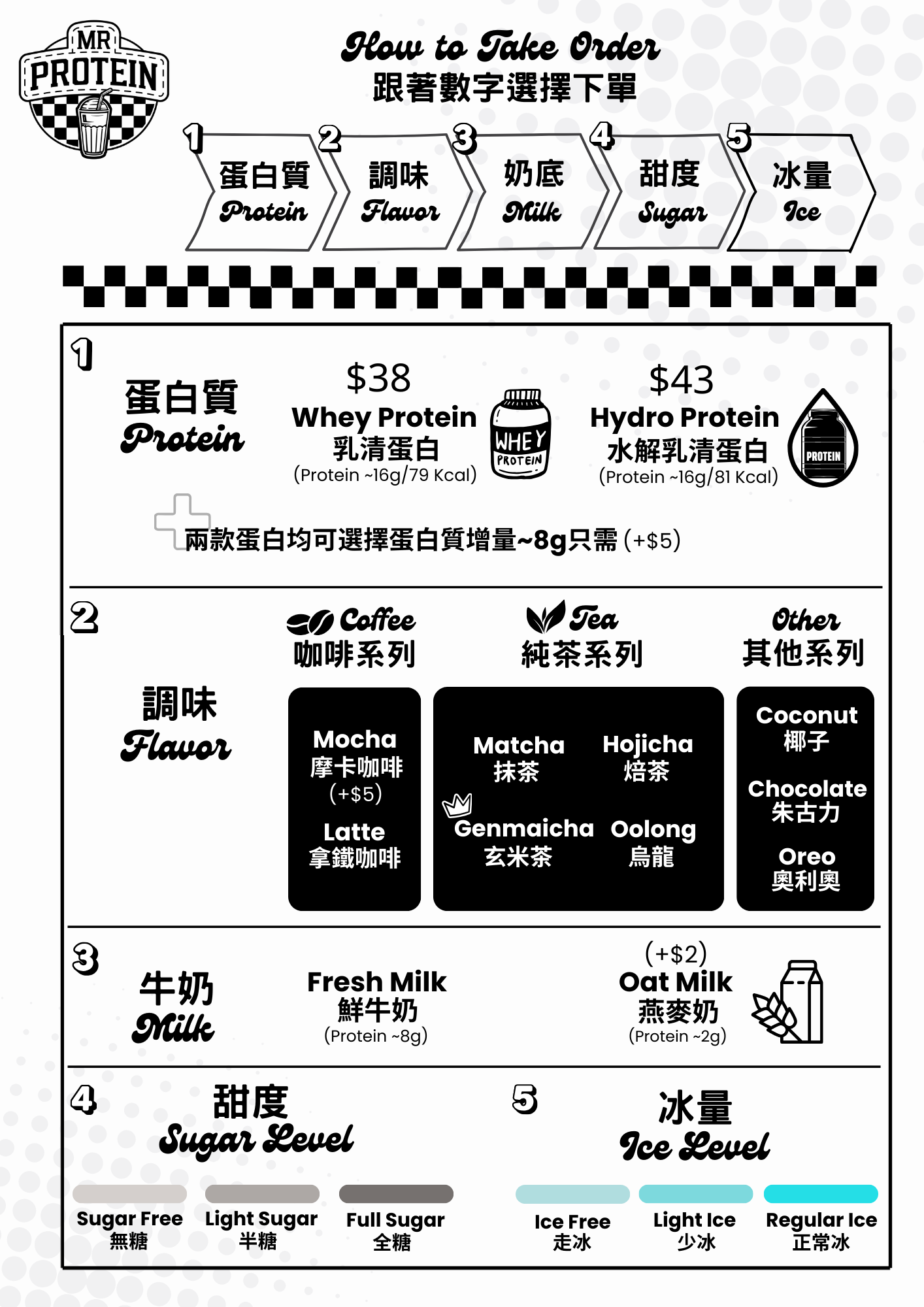 - 每杯含有18-40克的蛋白質 - 去除厭惡的蛋白粉味道 - 保留傳統手搖味道 - 比傳統手搖低一半以上卡路里