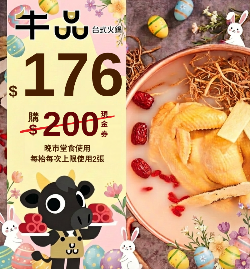 📌條款及細則: • 現金券/優惠券之有效期至2025年3月31日 (初一至初五、14/2及公眾假期不適用) • 必須以電子支付方式結帳方可享用優惠 • 於落單時必須聲明使用此優惠券 • 不可兌換現金 • 每次消費只可以用一張優惠券 • 需要消費才可用優惠券 • 元朗Yoho及大圍圍方分店堂食需另收加一服務費 • 加一服務費需按原價計算 • 此優惠券不可與其他優惠同時使用 • 圖片只供參考 • Tera 保留對此優惠券使用的最終決定權