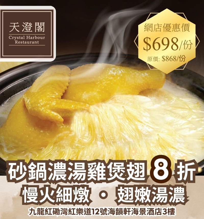 🔥會員限定驚喜!天澄閣 「砂鍋濃湯雞煲翅(例)」,原價$868,會員限定8折,只需$698!✨💕