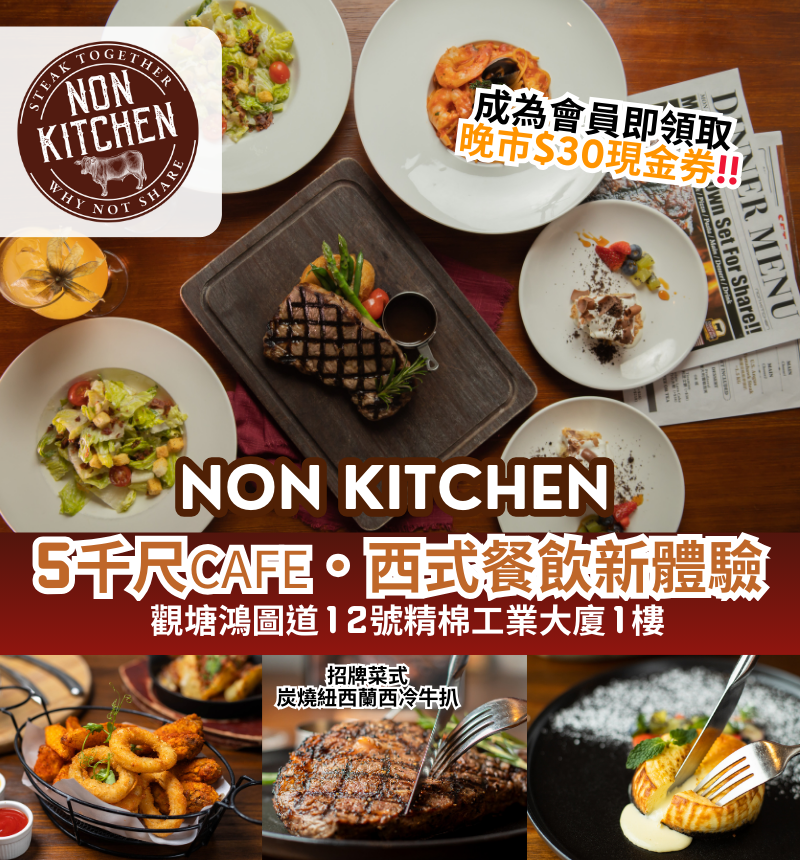 位於觀塘市中心的 NON KITCHEN,以 5,000 平方尺 的寬敞空間,為您帶來突破傳統的西式餐飲體驗。