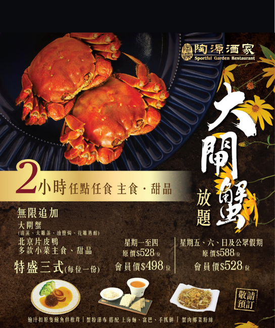 - 優惠僅適用於陶源酒家尖東、旺角、觀塘及灣仔分店,其他分店並不適用。