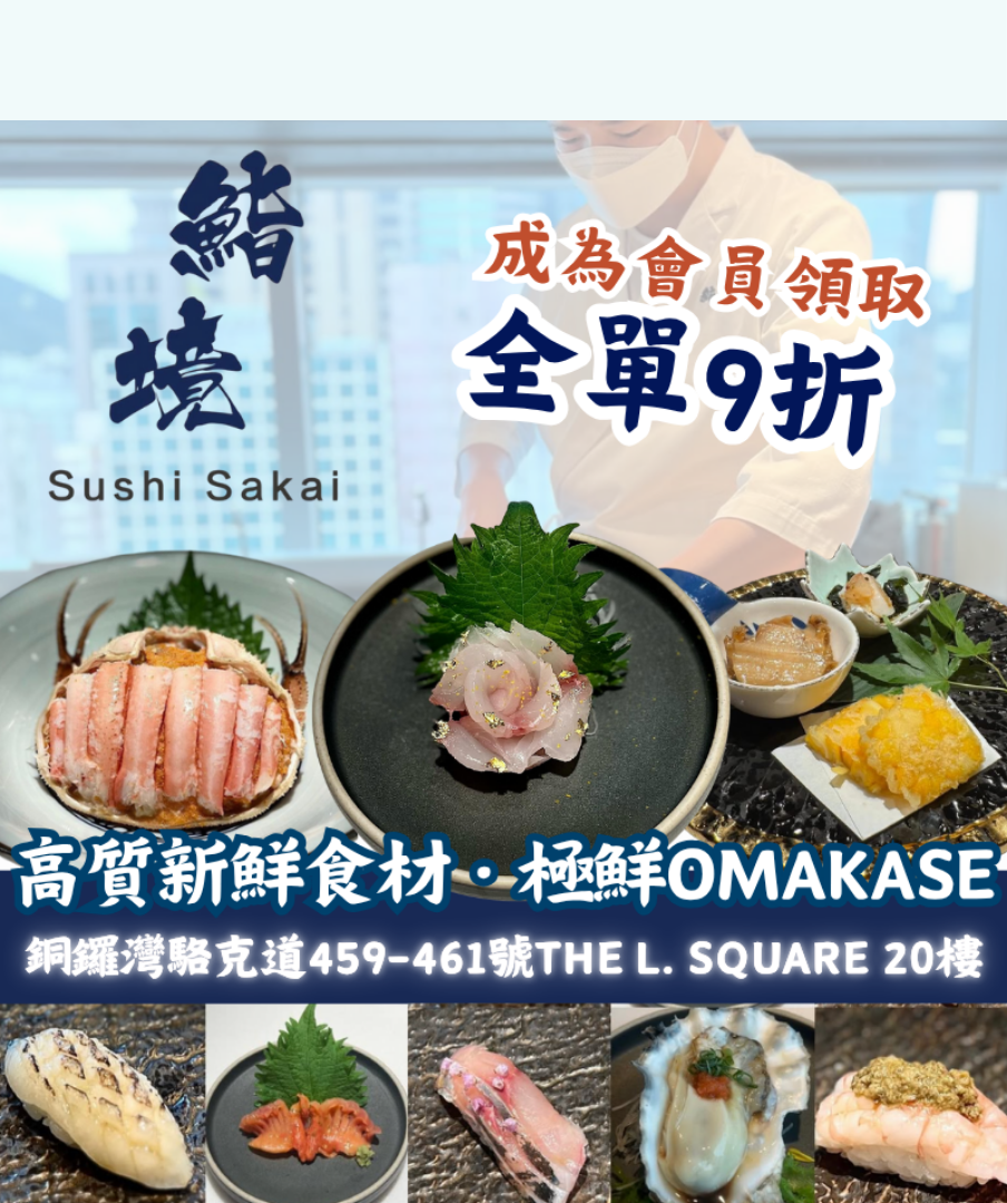 全單9折(只限Omakase使用) 優惠收條款及細則約束。 優惠可能隨時更改或取消,敬請留意。