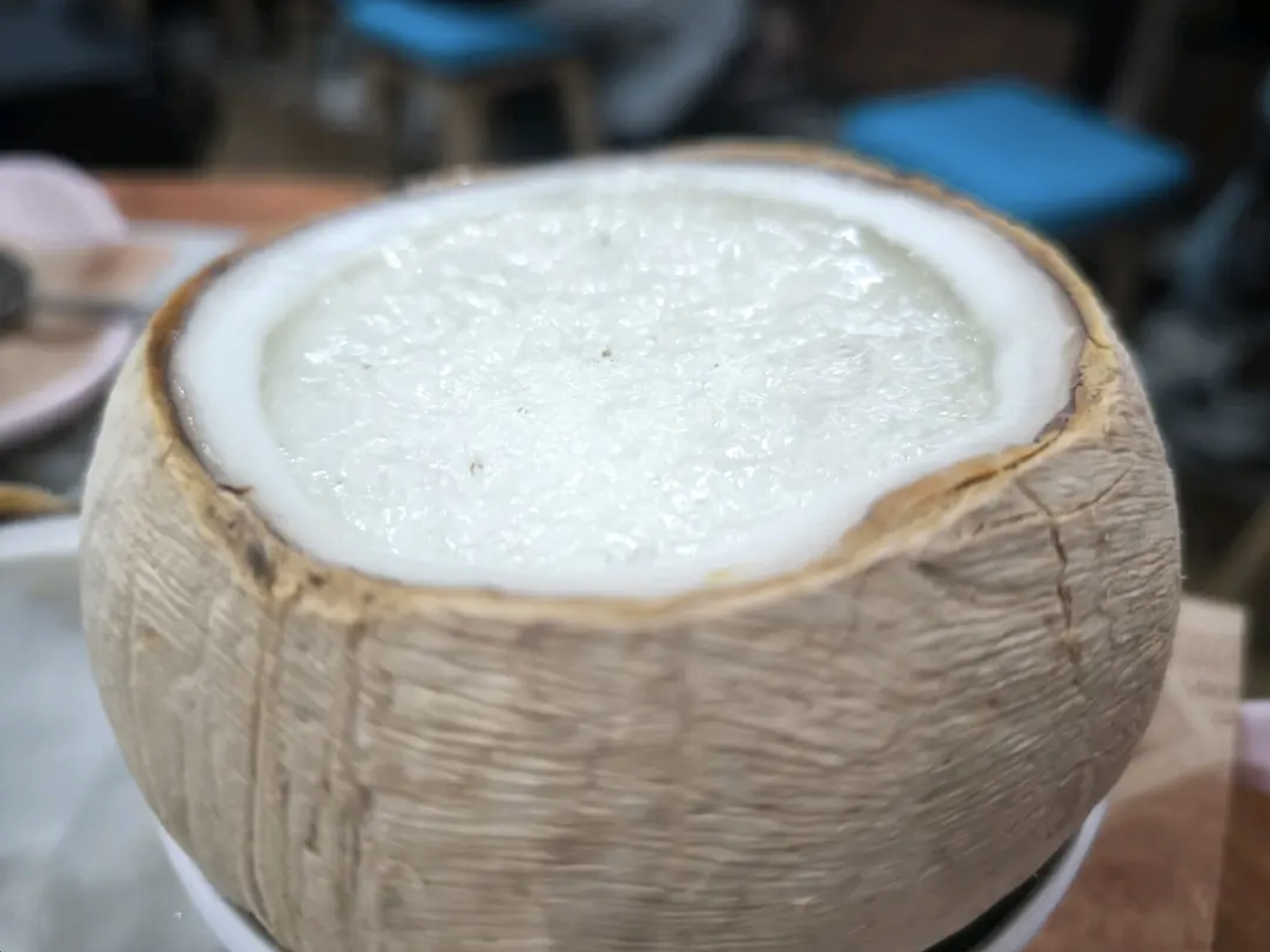 選用飽滿軟糯的木瓜與晶瑩 Q 彈的桃膠同燉,再注入濃醇椰汁慢熬。木瓜的果香、椰汁的醇厚與桃膠的爽滑交融,入口先是椰香繚繞,而後木瓜的清甜與桃膠的嚼勁層層遞進,每一口都潤而不膩❤️