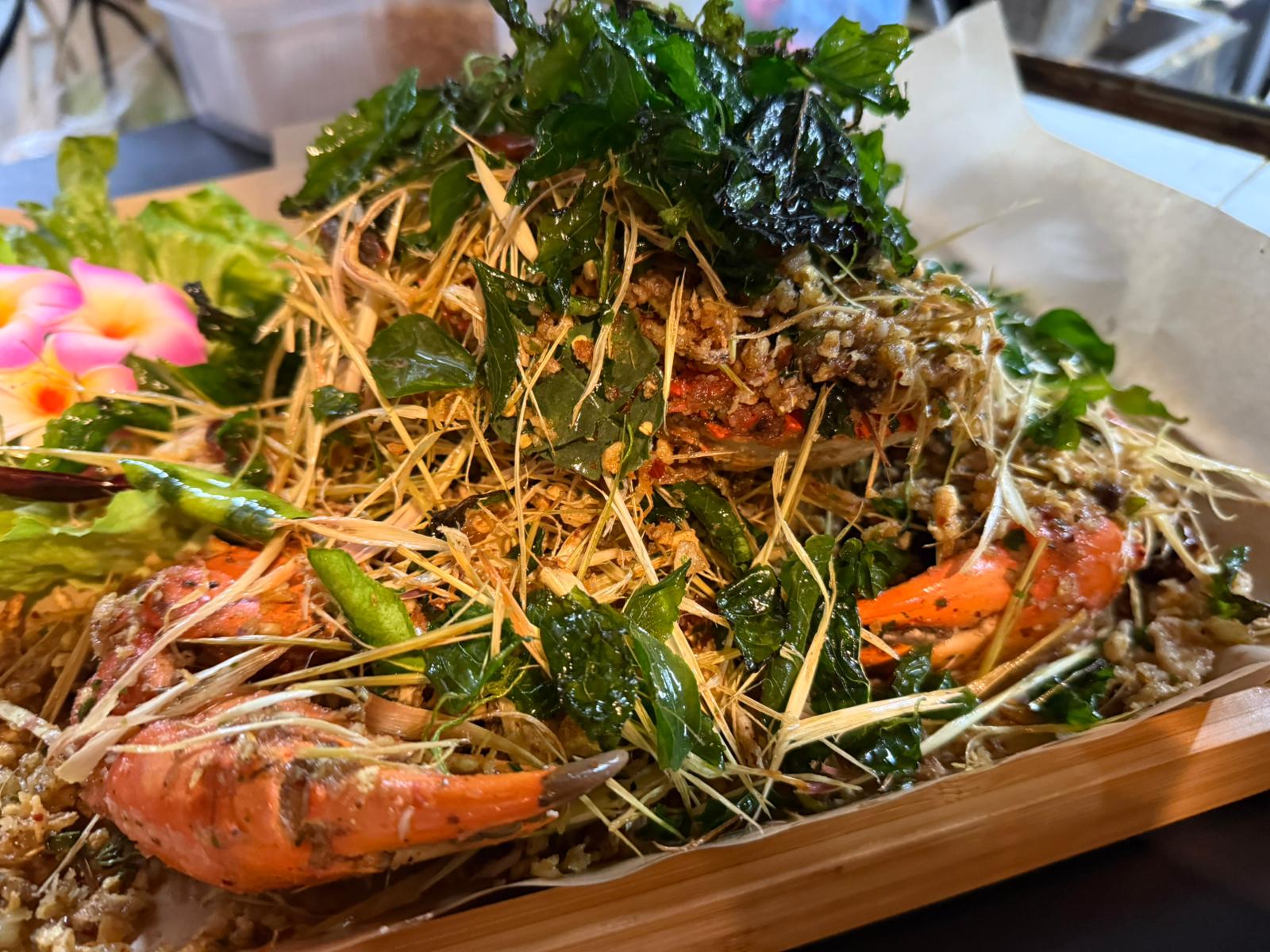 泰國海鮮料理中嘅「惹味代表」。選料偏好新鮮青蟹或肉蟹,蟹肉飽滿彈牙,先將蟹斬件煎至金香,鎖住肉汁,加入泰國小辣椒、南薑、香茅爆香,再淋上魚露、青檸汁、少許椰糖調味,煮成帶微酸辣嘅胡椒醬汁👍