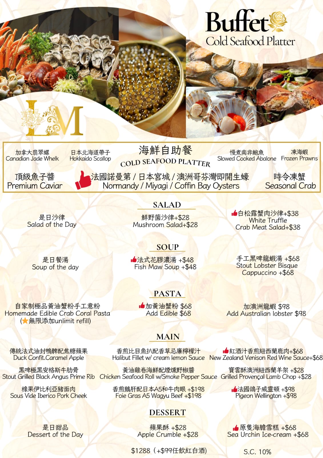 • 方案未包括原價加一服務費,餐廳會於現場向客人收取原價加一服務費HK$131.4 / 位
