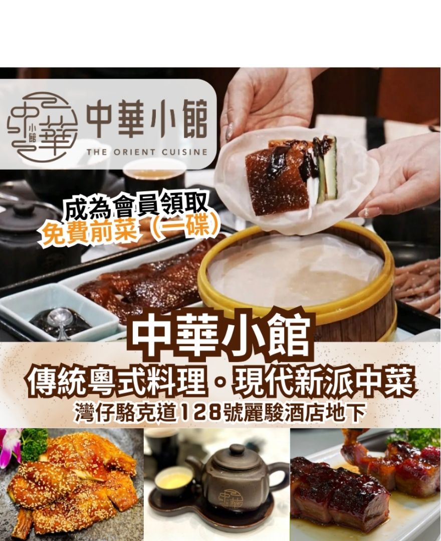 中華小館以傳統粵式美學為基底,透過木系結構、分層空間及細節裝飾平衡古典與現代感,既保留文化韻味,又提升實用舒適度。其環境設計精準服務於不同用餐場景,是灣仔區兼具格調與功能性的粵菜館典範。 供應點心、燒味等傳統粵式料理外,更融入現代烹調手法,製作新派中菜。
